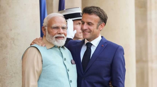 FILE PHOTO: French President Emmanuel Macron with Indian Prime Minister Narendra Modi.