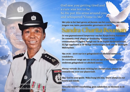 Overlijdensbericht: Gepensioneerde Inspecteur vanpolitie 3e klasse Sandra Charita BOUMAN