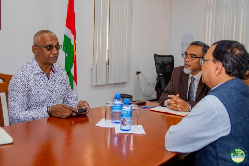 De minister van Grondbeleid en Bosbeheer ontving onlangs de Ambassadeur van India in Suriname, Subhash Prasad Gupta, voor een constructief bilateraal gesprek.
