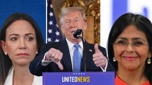 Foto compilation: María Machado, Donald Trump en Delcy Rodríguez